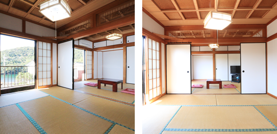 和室からは安房川が見えて心安らぐ客室になっています。 6畳ごとに襖での仕切りがあるのでグループにも最適のお部屋です。
